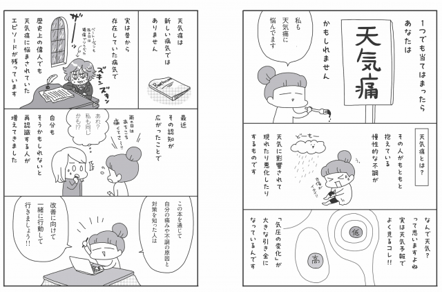 花粉や寝不足など、天気痛とダブルパンチで不調が発生した場合の対応法や、 子どもが天気痛に悩まされている時の寄り添い方など、これまでの天気痛本にはなかった内容もカバー。